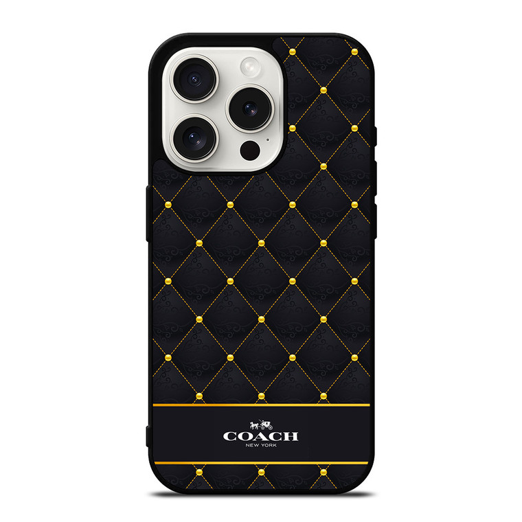 This premium COACH NEW YORK GOLD PATTERN iPhone 15 Pro Case Cover will protect your iPhone 15 Pro phone from every bumps and scratches with amazing style. The strong material of the case will give the excellent protection from crashes to the back, sides, and corners of your Apple iPhone. We manufacture the phone cover from hard plastic or silicone rubber in black or white color. The frame profile is slim, easy to snap in and access to all ports, buttons and sensors that make you feel enjoyable to carry. Every single case is created as personalized design, make it becomes a unique accessories for your phone. This cool and beautiful case is provided with high quality printing machine to avoid the image from fading. Casesummer provides the best but cheap price phone case to create elegant performance to your phone.